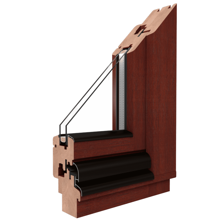 Elegantiškas dizainas atsispindi gražioje ir paprastoje suapvalinto profilio formoje. Galimi dviejų medienos rūšių langai: pušies ir šorėjos 450.